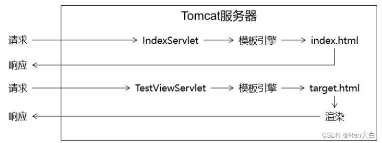 import java.io.IOException;public class ViewBaseServlet extends HttpServlet {private TemplateEngine templateEngine;@Overridepublic void init() throws ServletException {// 1.获取ServletContext对象ServletContext servletContext = this.getServletContext();// 2.创建Thymeleaf解析器对象ServletContextTemplateResolver templateResolver = new ServletContextTemplateResolver(servletContext);// 3.给解析器对象设置参数// ①HTML是默认模式,明确设置是为了代码更容易理解templateResolver.setTemplateMode(TemplateMode.HTML);// ②设置前缀String viewPrefix = servletContext.getInitParameter("view-prefix");templateResolver.setPrefix(viewPrefix);// ③设置后缀String viewSuffix = servletContext.getInitParameter("view-suffix");templateResolver.setSuffix(viewSuffix);// ④设置缓存过期时间(毫秒)templateResolver.setCacheTTLMs(60000L);// ⑤设置是否缓存templateResolver.setCacheable(true);// ⑥设置服务器端编码方式templateResolver.setCharacterEncoding("utf-8");// 4.创建模板引擎对象templateEngine = new TemplateEngine();// 5.给模板引擎对象设置模板解析器templateEngine.setTemplateResolver(templateResolver);}protected void processTemplate(String templateName, HttpServletRequest req, HttpServletResponse resp) throws IOException {// 1.设置响应体内容类型和字符集resp.setContentType("text/html;charset=UTF-8");// 2.创建WebContext对象WebContext webContext = new WebContext(req, resp, getServletContext());// 3.处理模板数据templateEngine.process(templateName, webContext, resp.getWriter());}