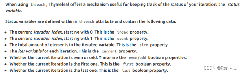 2. th:each的语法 th:each="遍历出来的数据,数据的状态 : 要遍历的数据"