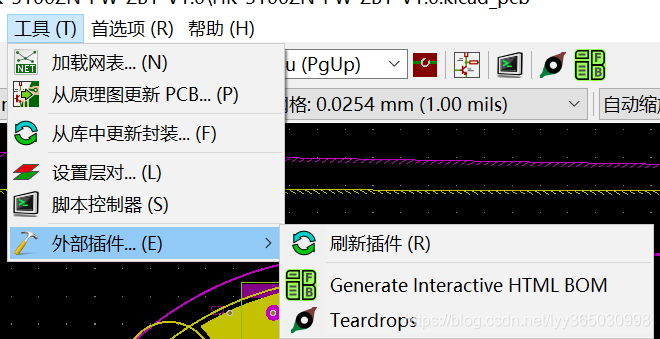 然后进入pcb文件中 工具->外部插件->刷新插件 就出来了