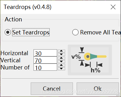 Teardrops使用很简单,点击该插件出来出来默认设置值没有改