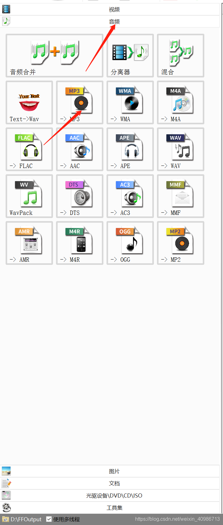 3.然后如图所示依次,点击【音频】->【-MP3】